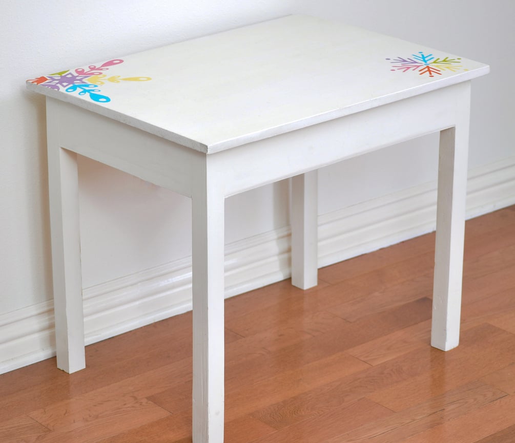 This is a digital 16-page PDF download featuring step-by-step building plans for the Kids table with hidden storage and a chair to go with it.
